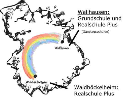 Bis hierher hat unsere Schule schon einige unruhige Jahre hinter sich gebracht: Im Jahre 1999 wurden die beiden eigenständigen Schulen „Grund- und Hauptschule Wallhausen“ und die „Hauptschule Waldböckelheim“ unter einem Dach und in einer neuen Schulform zusammengefasst: Es entstand auf Beschluss des damaligen Schulträgers die „Regionale Schule der Verbandsgemeinde Rüdesheim an den Standorten Wallhausen und Waldböckelheim“.